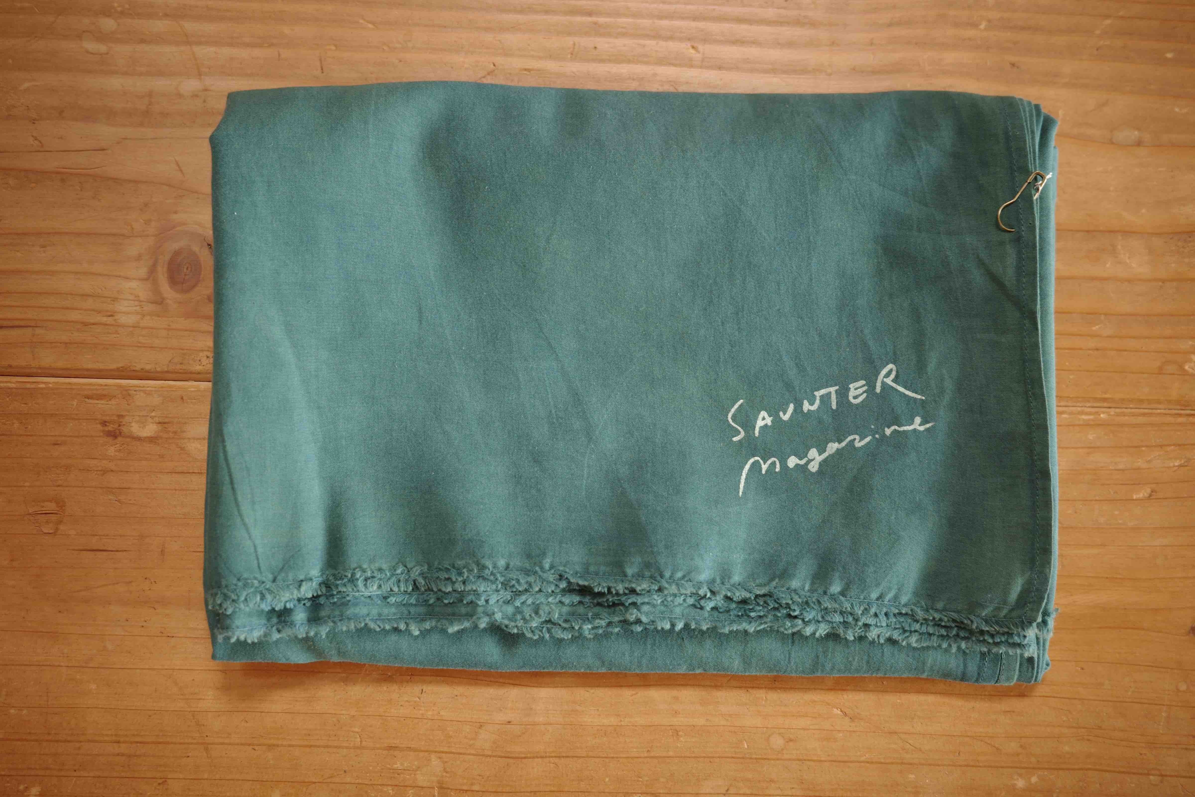 アイテムはkittaの定番商品「shikifu / 色布」に、青葉市子さんが手描きした「SAUNTER Magazine」の文字をシルクスクリーンでプリントしました。